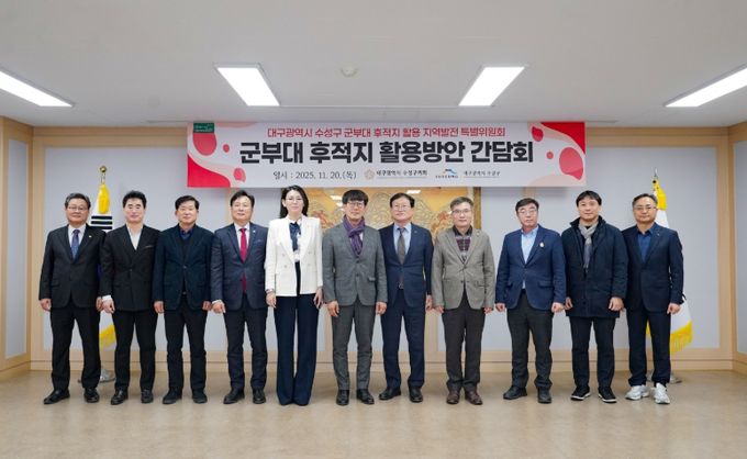 (포탈뉴스통신) 대구광역시 수성구의회 ‘군부대 후적지 활용 지역발전 특별위원회’는 지난 20일 수성구청 2층 회의실에서 구청과 함께 ‘군부대 후적지 활용방안 간담회’를 개최했다.