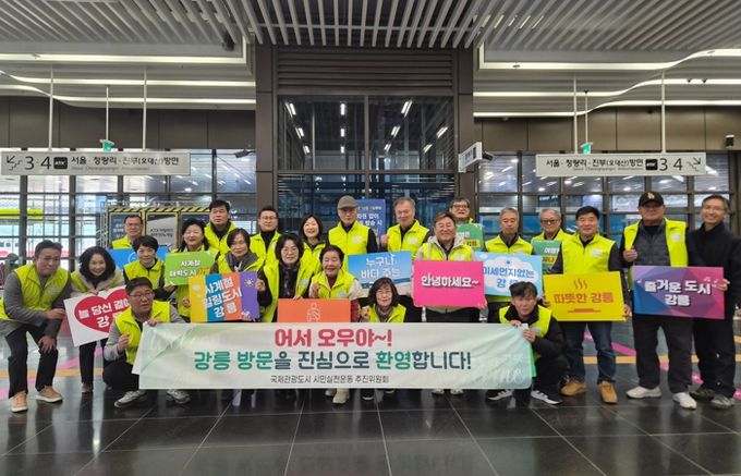 (포탈뉴스통신) 국제관광도시 시민실천운동 추진위원회 깨끗분과소속 30여 명은 지난 22일 강릉역에서 전국 제일의 친절한 도시 강릉 조성을 위한 관광객 환영 캠페인을 추진했다.