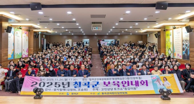 (포탈뉴스통신) 칠곡군어린이집연합회(회장 박우영)는 지난 24일 칠곡군교육문화회관 인문학홀에서 관내 어린이집 원장과 보육교사 등 보육교직원 250여 명이 참석한 가운데 ‘2025년 칠곡군 보육인 대회’를 성대하게 개최했다.