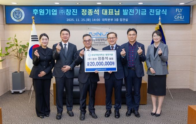 (포탈뉴스통신) 경상국립대학교(GNU·총장 권진회)는 기계설비 및 가스시설 공사업을 운영하는 ㈜창진 정종석 대표가 대학발전기금 500만 원을 기부했다고 밝혔다. 정종석 대표는 지난해 12월 1000만 원을 기부한 데 이어, 앞으로 4년간 매년 500만 원씩 모두 2000만 원을 기부하기로 약정하며 대학과의 인연을 지속적으로 이어가고 있다.