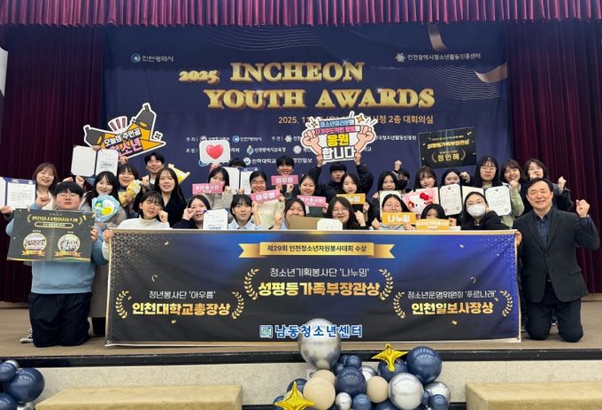 (포탈뉴스통신) 인천시 남동구 남동청소년센터는 소속 청소년 활동 참여‧자치기구가 인천시청에서 열린 ‘2025년 우수 청소년 활동 시상식(인천 유스 어워즈)’에서 성평등가족부 장관상을 포함해 총 8개 부문에서 수상했다고 26일 밝혔다.