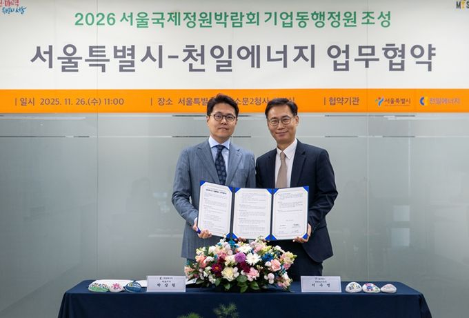 (포탈뉴스통신) 서울시는 2026년 서울숲에서 개최되는 서울국제정원박람회 내에 기업동행정원 조성을 위해 ESG 경영에 힘쓰고 있는 천일에너지와 11월 26일 업무협약을 체결했다.