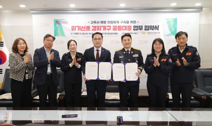 (포탈뉴스통신) 대전 동구는 26일 구청장 접견실에서 대전 동부소방서(서장 이준서)와 ‘위기신호 감지가구 공동대응’ 업무협약을 체결했다고 밝혔다.