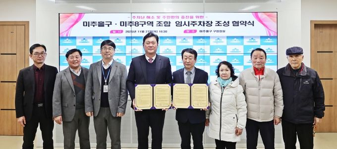 (포탈뉴스통신) 인천 미추홀구는 지난 27일 구청장실에서 미추8구역 주택재개발정비사업 조합과 ‘임시주차장 조성 협약’을 체결했다.
