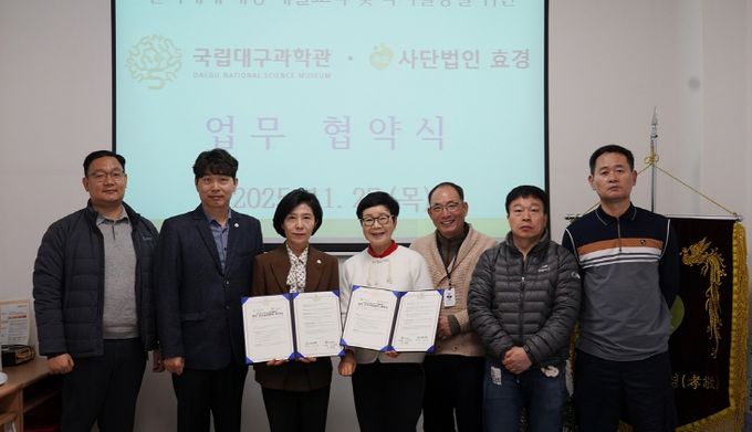 (포탈뉴스통신) 국립대구과학관(관장 이난희)은 27일 사단법인 효경(이사장 김양희)과 지역 실버 세대의 교육 및 복지 활동 활성화를 위해 업무협약(MOU)을 체결했다.