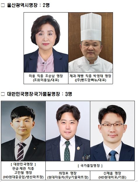 증서 수여에 이어 울산박물관 2층 ‘명장의 전당’에서 올해 대한민국명장과 국가품질명장 명패 등재식도 진행된다.