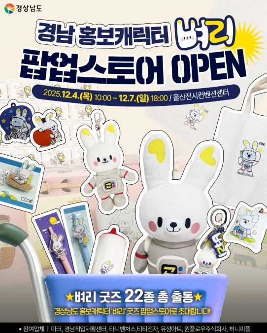 한편, ‘벼리’는 경남도가 우주항공 수도로 도약하는 비전을 담아 탄생한 우주복을 입은 토끼 캐릭터로, 온·오프라인에서 활발한 활동을 이어오고 있다. 최근에는 디지틀조선일보가 주관하는 ‘2025 대한민국 캐릭터어워즈’에서 대상을 수상하며 전국적인 주목을 받고 있다.