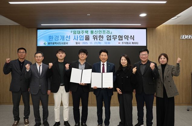(포탈뉴스통신) 광주도시공사(사장 김승남)는 27일 빛고을고객센터에서 주식회사 케이티(광주지사장 김태오)과 함께 임대주택 통신인프라 환경개선을 위한 업무협약(MOU)을 체결했다.