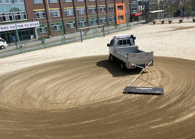 센터 소속 주무관이 1톤 트럭과 전문 장비를 활용해 학교에 직접 방문하여 평탄화 작업을 실시하며, 이를 통해 일선 학교에서는 인력과 예산의 한계로 수행하기 어려운 작업을 지원하여 학교의 업무 부담 경감에 기여하고 있다. 지난해 35교를 지원했으며, 올해는 지원 대상을 43교로 확대하여 더 많은 학교가 예산 절감 효과를 누리고 안전한 교육환경을 조성할 수 있도록 도왔다.