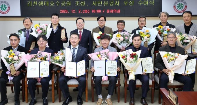 (포탈뉴스통신) 대전시는 2일 시청 중회의실에서 갑천생태호수공원 조성에 이바지한 공사 관계 유공자에게 호수공원 추진 유공 표창장 및 감사패를 수여했다.