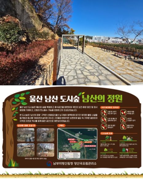 (포탈뉴스통신) 산림청 양산국유림관리소(소장 김병한)는 울산광역시 남구에 조성하는 '울산 남산 도시숲'이 '2025년 하반기 산림청 적극행정' 최우수 사례로 선정되었다고 밝혔다.