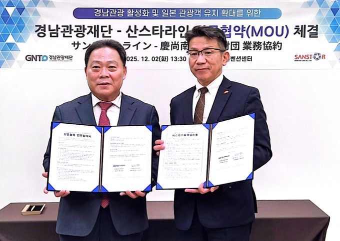 (포탈뉴스통신) 경남관광재단은 12월 2일 창원컨벤션센터에서 팬스타그룹 일본 현지법인인 ‘산스타라인(SANSTAR LINE)’과 ‘경남 관광 활성화 및 일본 관광객 유치 확대’를 위한 업무협약(MOU)을 체결했다고 밝혔다.