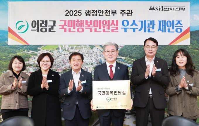 (포탈뉴스통신) 의령군이 행정안전부가 주관하는 ‘국민행복민원실’ 재인증 평가에서 우수기관으로 선정됐다. 인증 기간은 2025년 12월 1일부터 2028년 12월 31일까지 3년간이다.