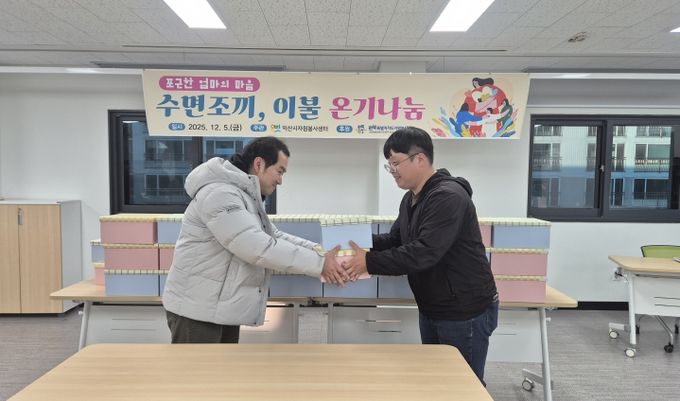 ㈔익산시자원봉사센터(이사장 엄양섭)는 5일 '포근한 엄마 맘 수면조끼 온기나눔' 전달식을 열고, 영유아를 위한 수면조끼와 이불 지원에 나섰다.