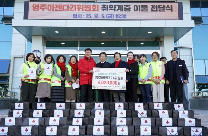 (포탈뉴스통신) 영주시는 지난 5일 영주아젠다21위원회(위원장 서익제)가 영주시청 전정에서 취약계층을 위한 이불 67채(402만 원 상당) 전달식을 개최했다고 밝혔다.