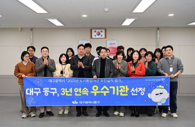 (포탈뉴스통신) 대구 동구청이 ‘대구시 2025년 도시환경개선 추진 실적 평가’에서 우수기관으로 선정됐다. 2023년도 우수, 2024년도 최우수기관 선정에 이어 3년 연속 수상이다.