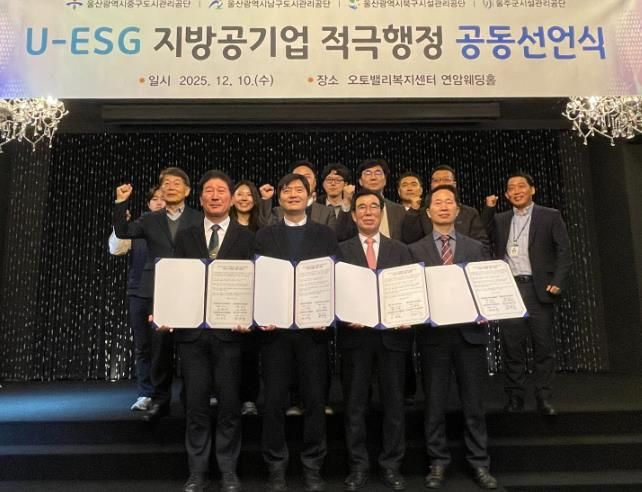 (포탈뉴스통신) 울산 구·군 지방공기업으로 구성된 ‘U-ESG 협의체’는 10일 오토밸리복지센터에서 기관장과 실무진이 참석한 가운데 ‘적극행정 공동선언식’을 성공적으로 개최했다고 밝혔다.