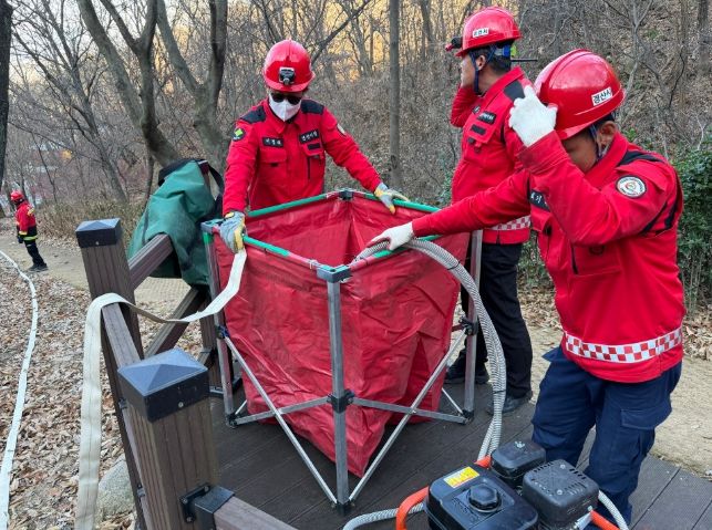 (포탈뉴스통신) 경산시는 9일 겨울철 산불 조심 기간에 대비하여 산불 전문 예방 진화대를 중심으로 산불 진화 기계화 훈련을 실시했다고 밝혔다. 이번 훈련은 겨울철 춥고 건조한 기상 여건 속에 소규모 산불도 대형화될 우려가 커지는 만큼, 엔진 펌프를 활용한 기계화 진화 시스템의 운용 능력을 숙달하는 한편, 헬기·드론·지휘차 등 진화 자원을 입체적으로 연계한 통합 지휘 체계 운영 능력을 점검하는 데에 초점을 맞췄다.