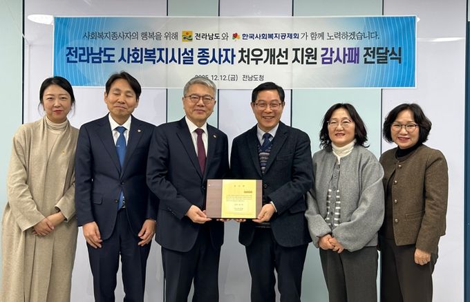 김용하 한국사회복지공제회 이사장은 “전남도가 2022년부터 사회복지시설 종사자들을 위해 꾸준히 노력해 온 점이 사회복지 현장의 큰 희망이 되고 있다”며 “이에 감사의 마음을 담아 감사패를 전달한다”고 말했다.