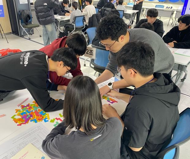 학생들은 5~6명이 한 조를 이뤄 총 6개 팀을 구성하고, 렙타일, 펜토미노 등 창의적인 문제를 해결하는 미션에 도전했다. 미션 수행 후에는 팀별로 풀이 과정을 발표하는 시간이 이어졌으며, 이를 통해 학생들은 자신만의 문제 해결 방법을 공유하고 수학적 사고를 심화시키는 기회를 가졌다.