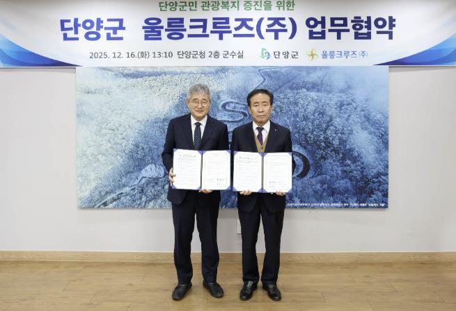 (포탈뉴스통신) 충북 단양군은 지난 16일 울릉크루즈(주)와 업무협약(MOU)을 체결하고, 군민을 대상으로 한 울릉도 여행 요금 할인 혜택을 추진한다고 밝혔다.