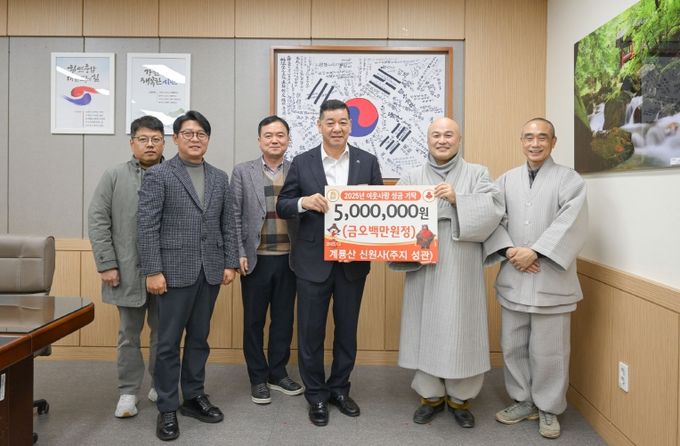 (포탈뉴스통신) 공주시는 대한불교조계종 신원사가 지난 16일 시청 상황실에서 이웃돕기 성금 500만 원을 전달했다고 밝혔다.