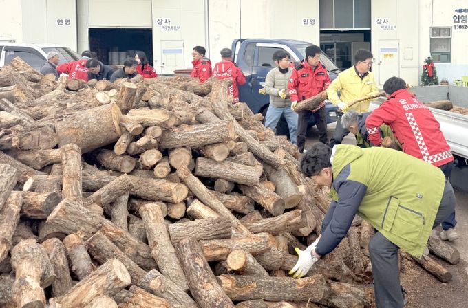 순창군 산림조합의 지원으로 마련된 이번 행사를 위해 조합은 사업장에서 산물 수집과 땔감용 조재 작업을 진행해 목재를 준비했다.