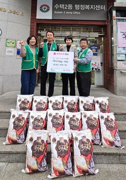 (포탈뉴스통신) 구리시 수택2동은 지난 16일 구리시 환경21연대로부터 50만원 상당의 백미 10kg 15포를 후원받았다고 밝혔다.