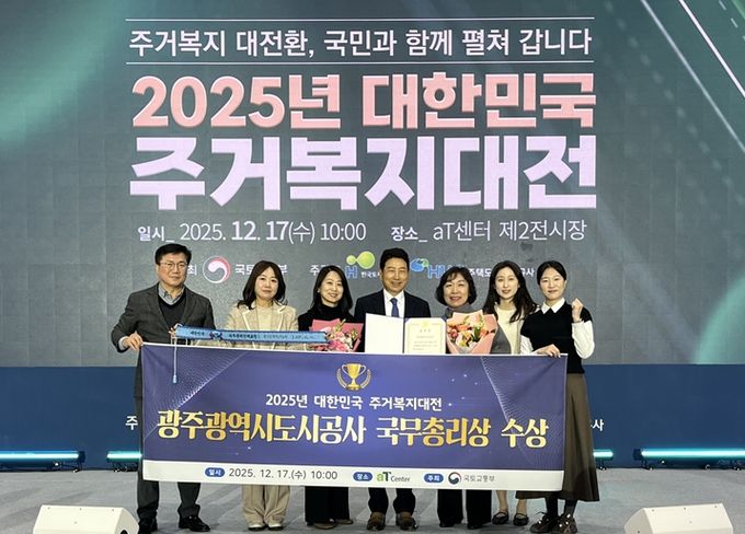 (포탈뉴스통신) 광주도시공사(사장 김승남)는 17일 서울 양재 aT센터에서 열린 ‘2025 대한민국 주거복지대전’에서 주거복지 향상 및 서민 주거안정에 기여한 공로를 인정받아 국무총리 표창을 수상했다고 밝혔다.