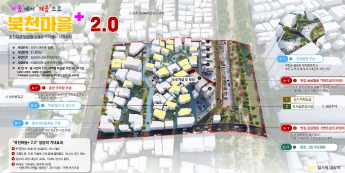 경주시는 빈집이 밀집된 북천마을을 중심으로 주거환경 개선과 생활 인프라 확충, 공동체 회복을 목표로 ‘북천마을 플러스 2.0 - 비움에서 채움으로’라는 비전 아래 공모에 참여해 최종 선정됐다.
