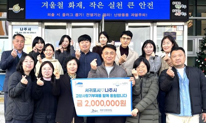 (포탈뉴스통신) 전라남도 나주시는 지난 17일 나주시 세무과와 제주특별자치도 서귀포시 세무과 직원들이 고향사랑기부금 상호 교차 기부에 동참했다고 밝혔다.