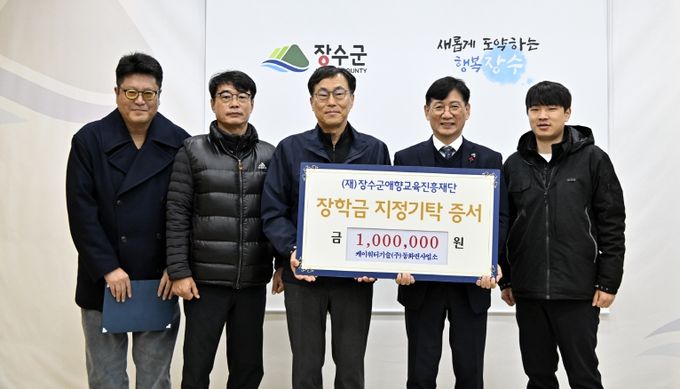 전달된 장학금은 장수군애향교육진흥재단을 통해 지역 학생들의 학업 지원과 교육 여건 개선을 위한 재원으로 활용될 예정이다.