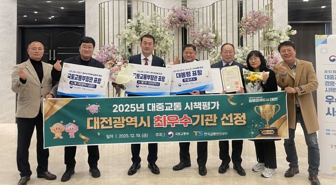 (포탈뉴스통신) 대전시는 국토교통부 주관 2025년 대중교통 시책평가에서 최우수기관으로 선정돼 19일 장관 표창을 수상했다.