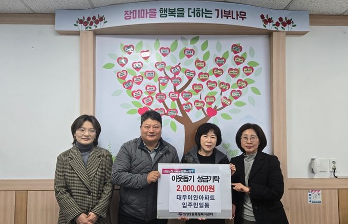 조명연 대우이안아파트 입주자대표는 “입주민들의 작은 정성이 주변의 어려운 이웃들에게 따뜻한 위로와 희망으로 전해지길 바란다”며 “앞으로도 주민들과 함께 나눔 문화 확산에 지속적으로 동참하겠다”고 말했다.