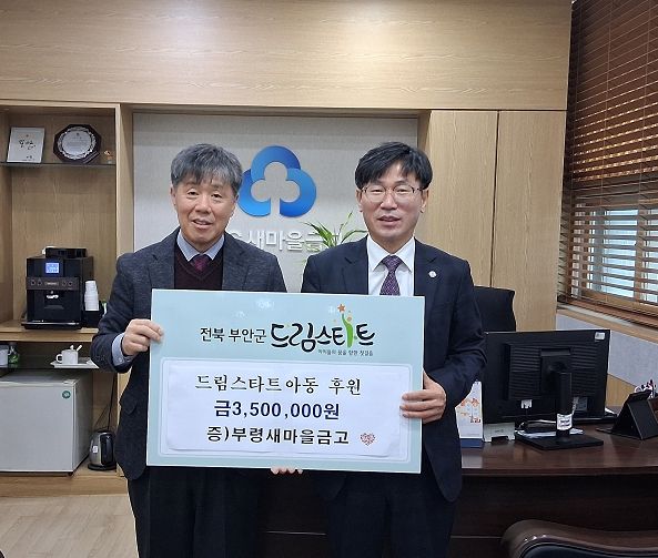 (포탈뉴스통신) 부안군 부령새마을금고(이사장 송진삼)는 지난 19일 부안군 드림스타트 취약계층 아동을 지원하기 위해 후원금 350만원을 기탁했다고 밝혔다.