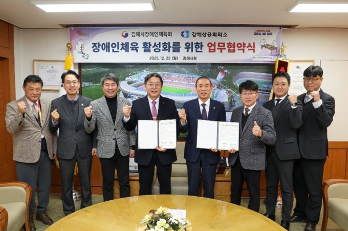 (포탈뉴스통신) 김해시장애인체육회는 22일 오전 10시 김해시청에서 김해상공회의소(회장 노은식)와 장애인체육 활성화를 위한 업무협약을 체결했다.