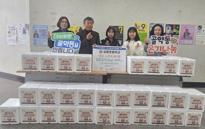 (포탈뉴스통신) 성황초등학교가 지난 19일, 광양시 골약동지역사회보장협의체(공공위원장 박순옥, 민간위원장 정용태)에 학교 나눔 장터 수익금과 김장김치 30박스를 기탁하며 이웃사랑을 실천했다.