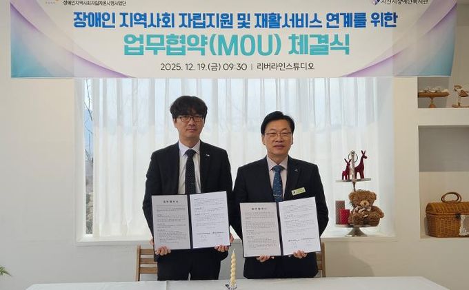 (포탈뉴스통신) 서산시장애인지역사회자립지원시범사업단과 서산시장애인복지관은 2025년 12월 19일, 서산시에 거주하는 장애인의 안정적인 지역사회 정착과 복지 향상을 위해 업무협약(MOU)을 체결했다.