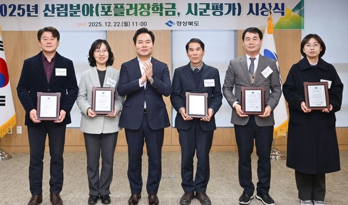 (포탈뉴스통신) 경상북도는 22일 도청 사림실에서 ‘2025년 산림분야 종합평가’우수 시군에 표창패와 포상금을 수여하고 한 해 동안 산림시책 행정 추진을 위해 노력한 시군 관계자들을 격려했다.