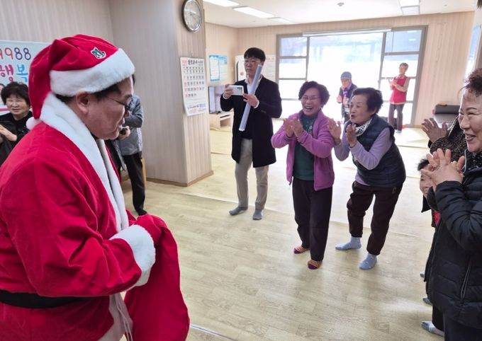 진천읍 한 경로당 회원은 “크리스마스에 산타가 어린이들에게만 선물을 주는지 알았는데 우리 노인들한테도 찾아와 줘서 어린아이처럼 가슴 설레고 기쁘다”며 봉사자들에게 감사를 표했다.