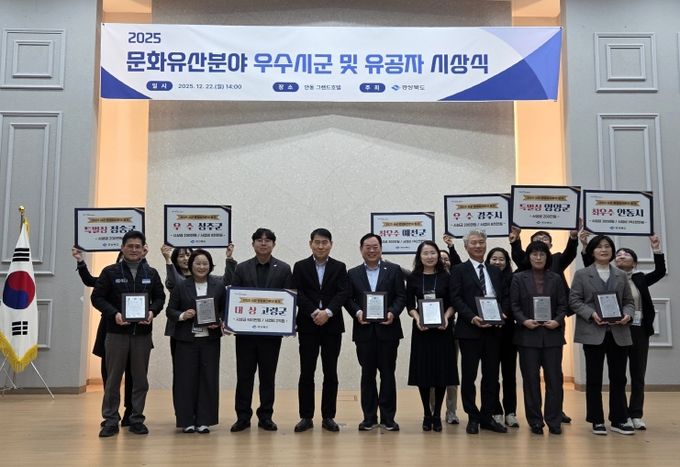 이번 시상은 2025년 한 해 동안 도내 22개 시군이 추진한 문화유산 보존·정비 실적과 국가유산 활용사업 등 6개 분야, 15개 지표를 종합적으로 평가해 선정됐다.