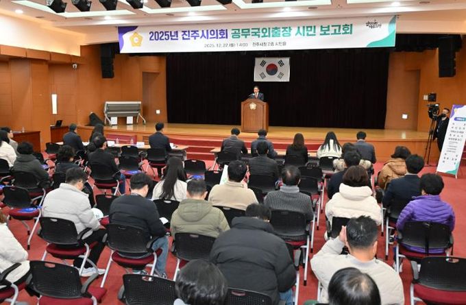 (포탈뉴스통신) 진주시의회는 22일 시민과 시 관계부서 공무원, 출연·유관기관 관계자 등이 참석한 가운데 ‘2025년 진주시의회 공무국외출장 시민보고회’를 시청 시민홀에서 열고, 해외 연수 성과의 정책 적용 가능성을 시민과 함께 살폈다.