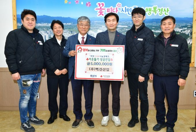 조현일 경산시장은“지역경제를 이끌며 나눔까지 실천해 주신 벽진산업에 깊이 감사드린다”며“기탁해 주신 성금은 도움이 필요한 이웃들에게 소중히 전달하겠다”고 전했다.