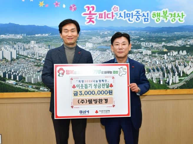 (포탈뉴스통신) 경산시는 ㈜웰빙환경(대표이사 박상희)이 12월 19일 이웃돕기 성금 및 인재 육성을 위한 장학금 총 500만 원을 기탁했다고 밝혔다.