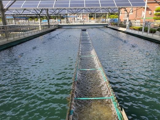 이에 시는 지난 10월 삼계정수장 침전지 1개지 수면에 볼 파동 장치를 시범 설치해 운영 중이다.