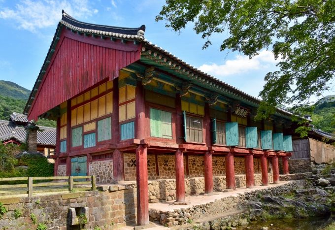 ‘개울을 베고 누운 다락’이라는 뜻을 가진 침계루는 조계산 계곡을 끼고 세워진 정면 7칸, 측면 3칸 규모의 2층 사찰 누각이다.