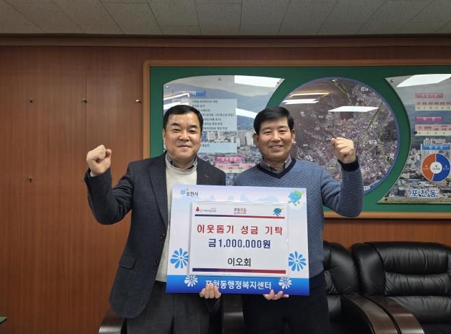 (포탈뉴스통신) 포천동 행정복지센터는 지난 22일 이오회가 포천동 내 어려운 이웃을 돕기 위해 성금 100만 원을 기탁했다고 밝혔다.