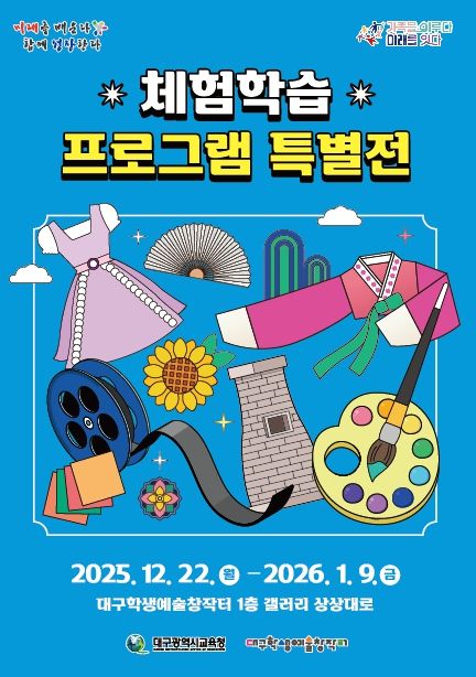 (포탈뉴스통신) 대구시교육청 산하 대구학생예술창작터는 12월 22일부터 1월 9일까지 창작터 1층 갤러리 ‘상상대로’에서 '2025 체험학습 프로그램 특별전'을 개최한다.