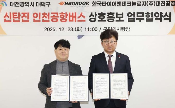대덕구는 23일 한국타이어앤테크놀로지㈜ 대전공장과 인천공항버스 이용 활성화를 위한 업무협약(MOU)을 체결했다고 밝혔다.