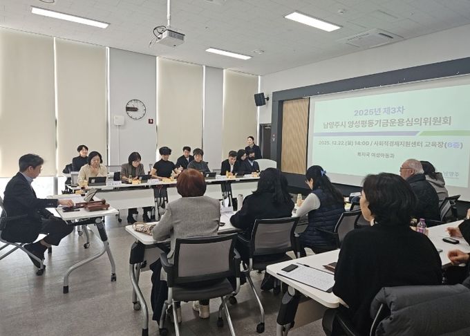 (포탈뉴스통신) 남양주시는 22일 남양주사회적경제지원센터에서 ‘2025년 제3차 남양주시 양성평등기금운용심의위원회 및 성과공유회’를 개최하고, 올해 추진한 양성평등기금 지원사업의 성과를 공유하며 2026년도 사업방향을 논의했다고 밝혔다.